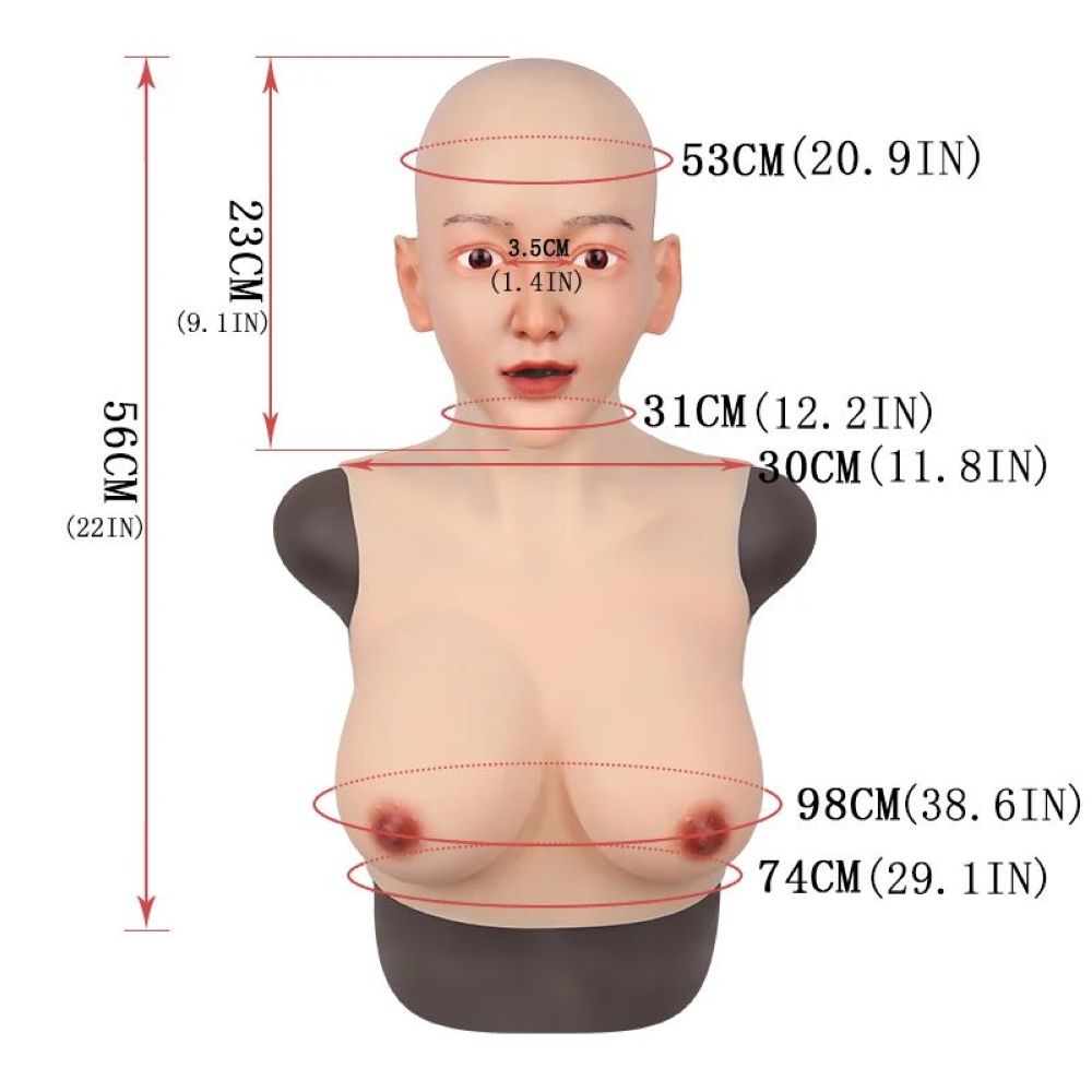 Buste faux seins masque intégré la consécration de la beauté féminine. La beauté et le réconfort en un instant