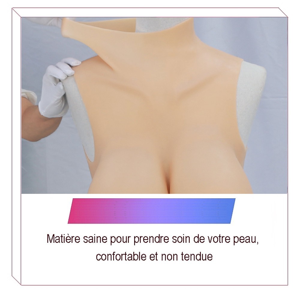 Buste long gros seins en silicone, col haut, Bonnet I Buste faux seins réaliste, col haut, Bonnet H Buste faux seins réaliste, col haut, Bonnet H Buste faux seins réaliste, col haut, Bonnet H