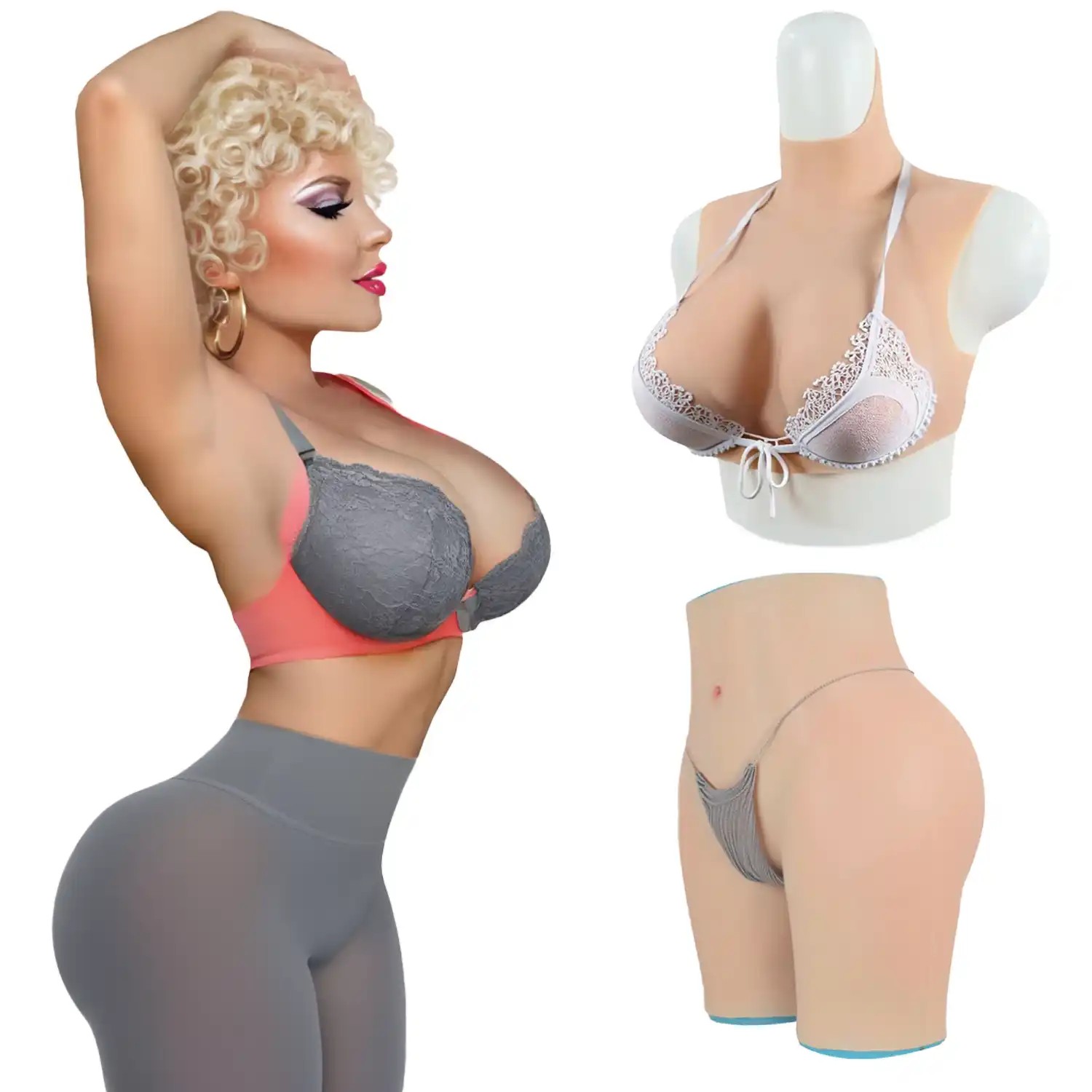 Fabriqué à partir de silicone de grade médical, cet ensemble est hypoallergénique, doux pour la peau et incroyablement durable. Il est facile à nettoyer et à entretenir, garantissant une hygiène irréprochable. Que vous soyez en quête d'une transformation complète, d'une amélioration discrète de votre silhouette ou que vous l'utilisiez pour des performances scéniques, cet ensemble vous garantira un rendu authentique et un bien-être absolu.