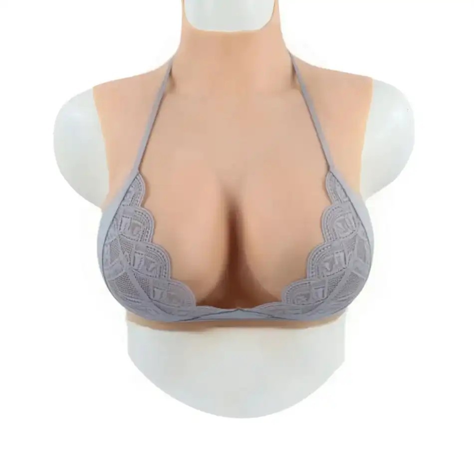 Fabriqué en silicone de qualité supérieure, ce buste imite parfaitement l’apparence et la texture d’une véritable poitrine. Son col haut assure une finition élégante et naturelle, idéale pour être portée avec différents styles vestimentaires. Extensible, doux et confortable, il épouse le corps pour un effet réaliste et sensuel.