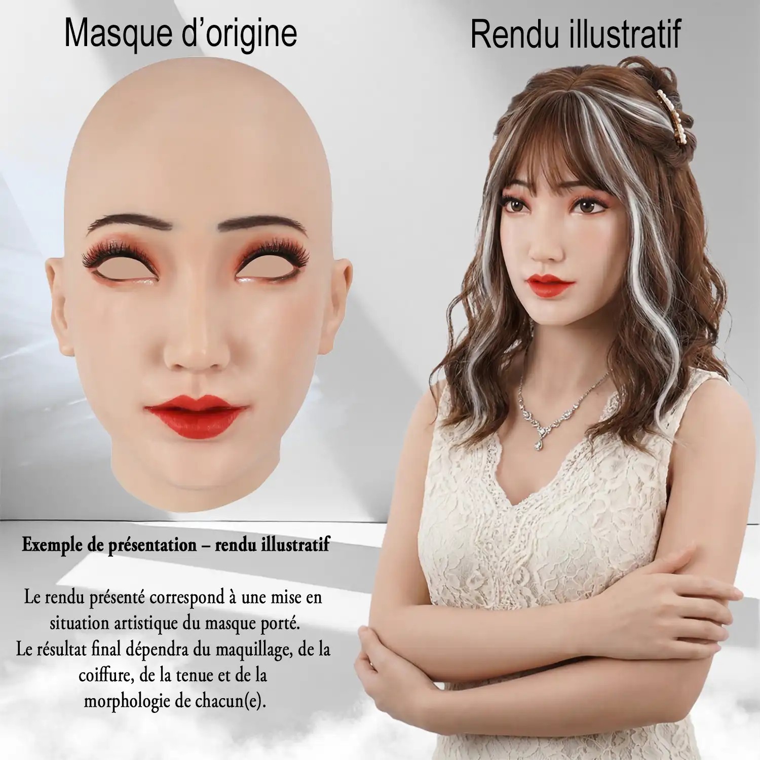 Masque tête pleine en silicone avec maquillage délicat, au rendu féminin réaliste.