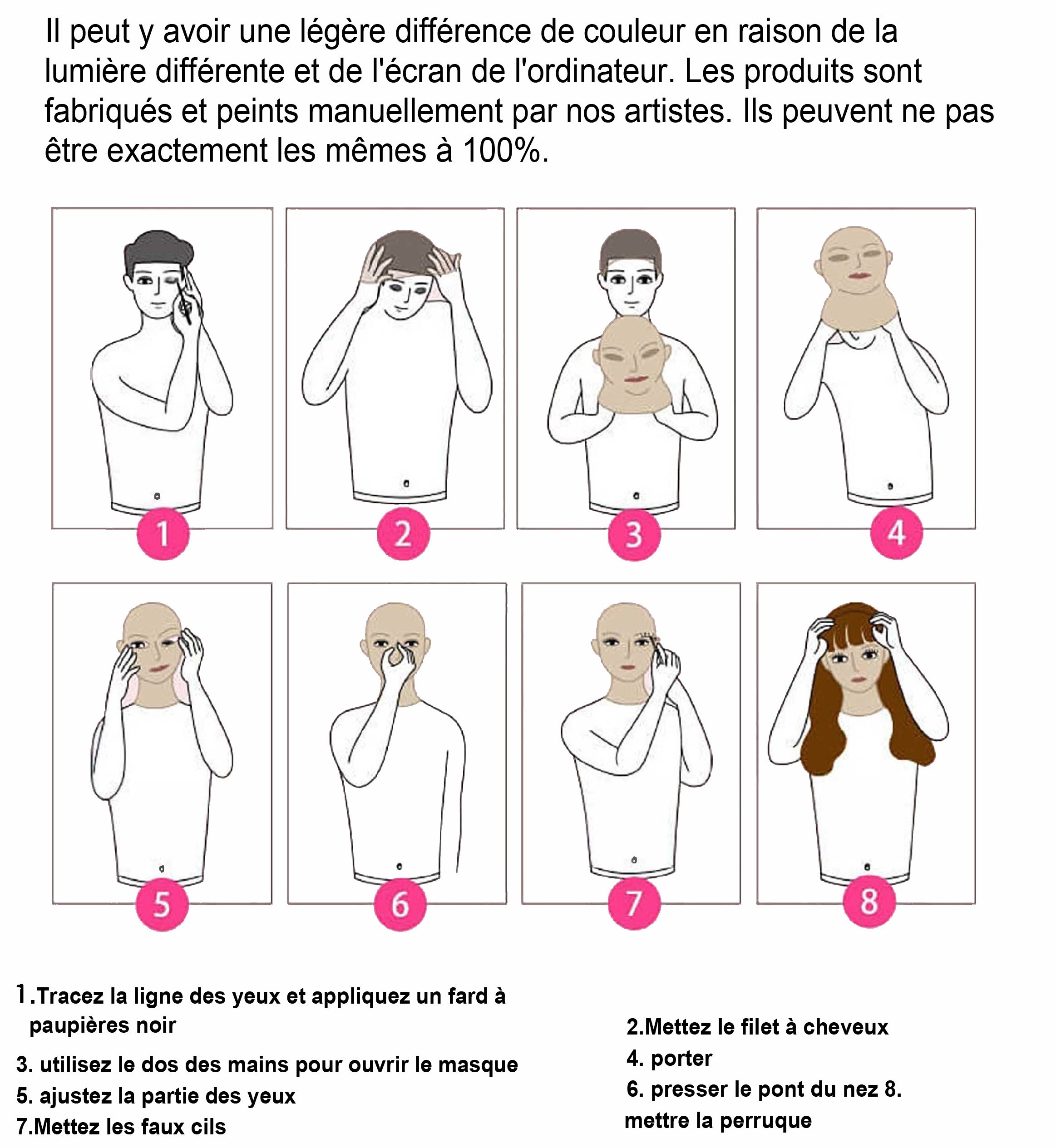 • Les photos de présentation peuvent montrer une mise en scène (maquillage, perruque, cils) à titre illustratif.