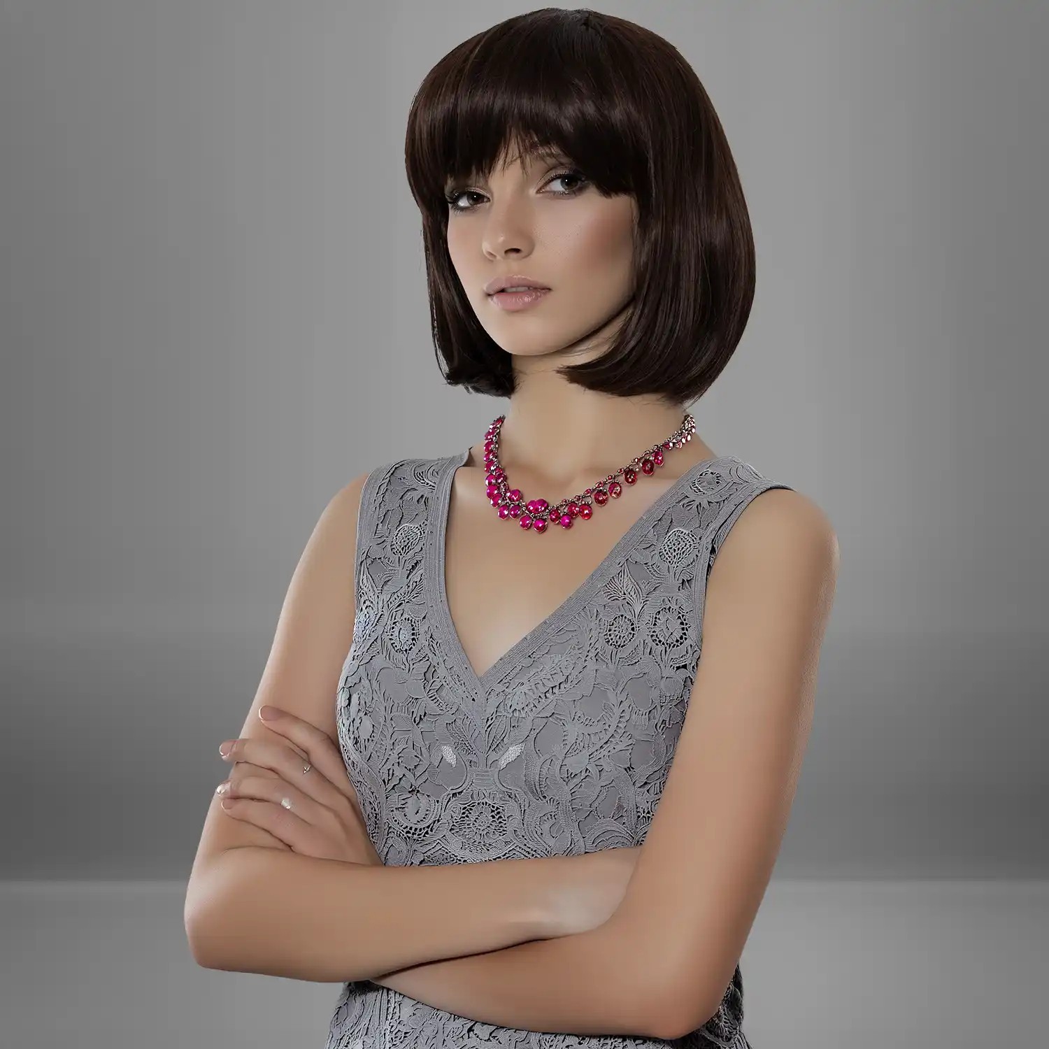 Cette perruque carré lisse châtain avec frange vous offre un look soigné et plein de caractère en quelques secondes, sans effort et sans compromis. La coupe encadre harmonieusement le visage tandis que la frange apporte une personnalité affirmée, pour une silhouette rayonnante au quotidien. Légère, douce et d'un naturel bluffant, elle devient l'alliée idéale de toutes celles qui souhaitent s'exprimer librement et avec fierté.